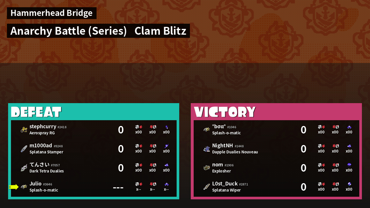 | Mode | Clam Blitz - Anarchy Battle (Series) | ||