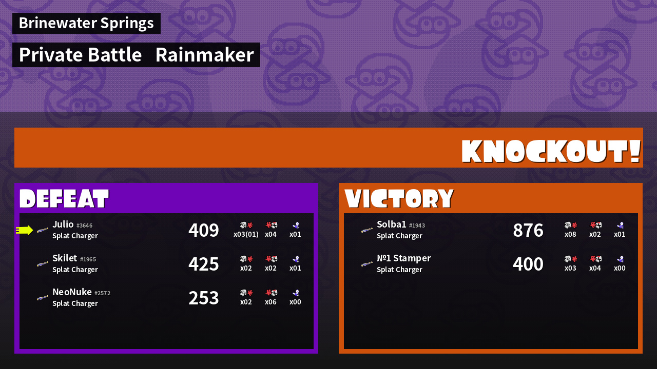 | Medals | #1 Overall Splatter #1 Score Booster Record-Score Setter | ||