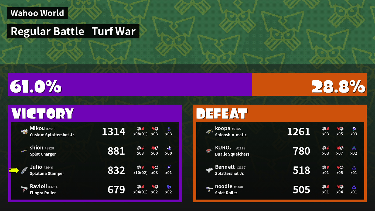 | Medals | #1 Overall Splatter #1 Popular Target #1 Enemy Splatter | ||||