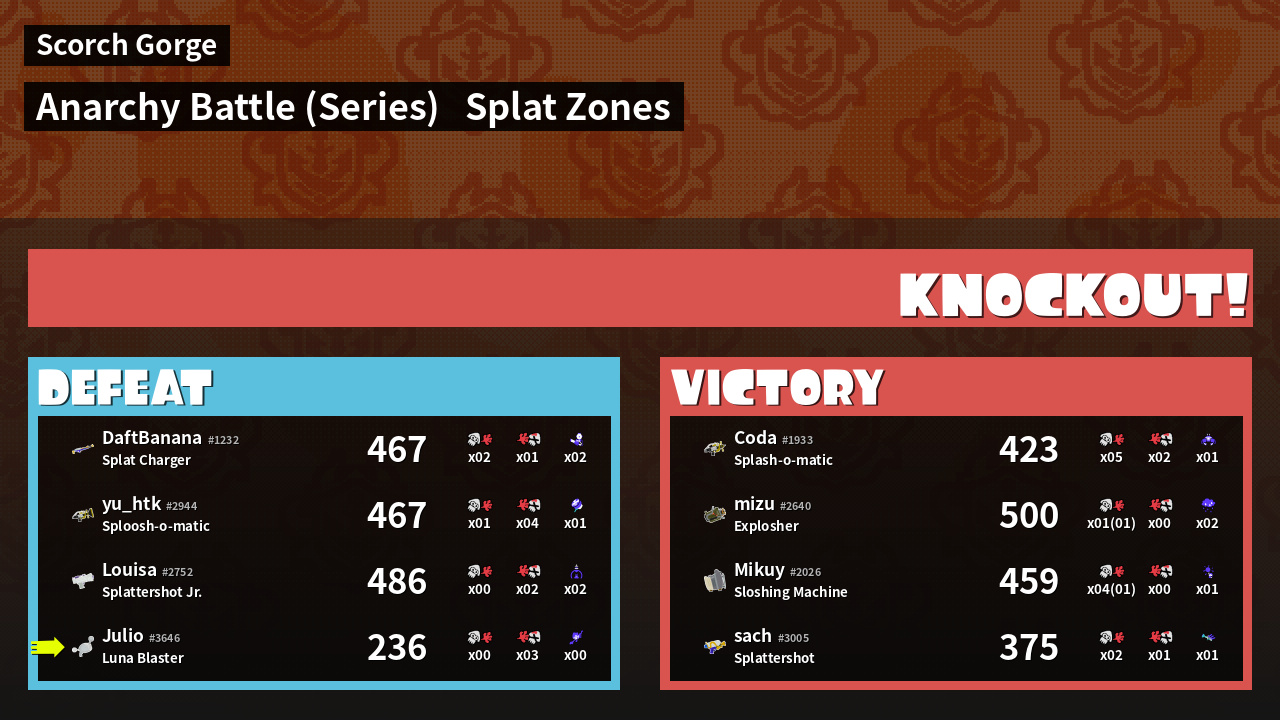 | Mode | Splat Zones - Anarchy Battle (Series) | ||