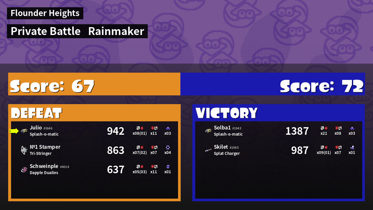 | Medals | #1 Overall Splatter #1 Turf Inker #1 Enemy Splatter | ||