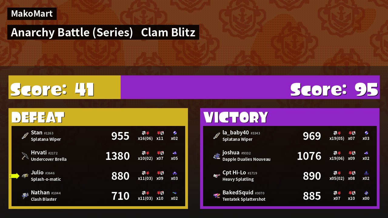 | Mode | Clam Blitz - Anarchy Battle (Series) | ||