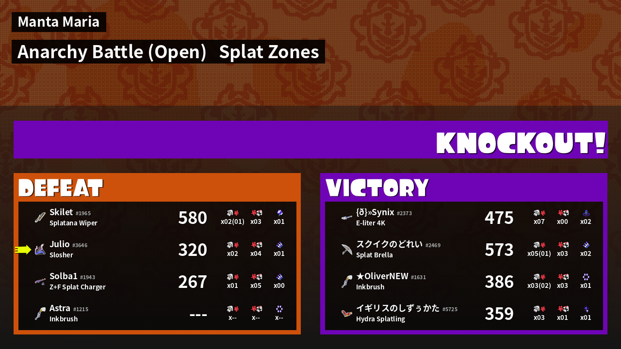| Mode | Splat Zones - Anarchy Battle (Open) | ||