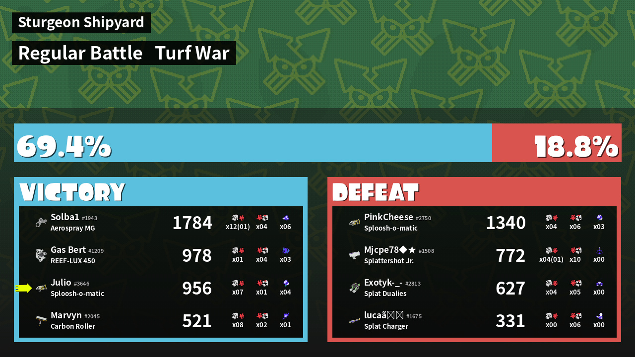 | Weapon | Sploosh-o-matic ( Curling Bomb / Ultra Stamp) | ||