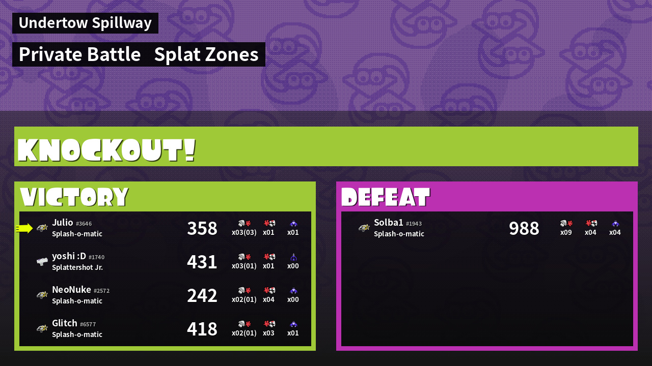 | Mode | Splat Zones - Private Battle | ||