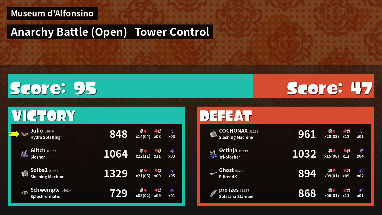 | Mode | Tower Control - Anarchy Battle (Open) | ||