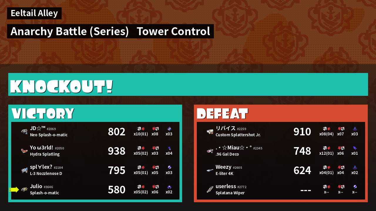 | Medals | #1 Splat Assister #1 Ground Traveler #2 Overall Splatter | ||