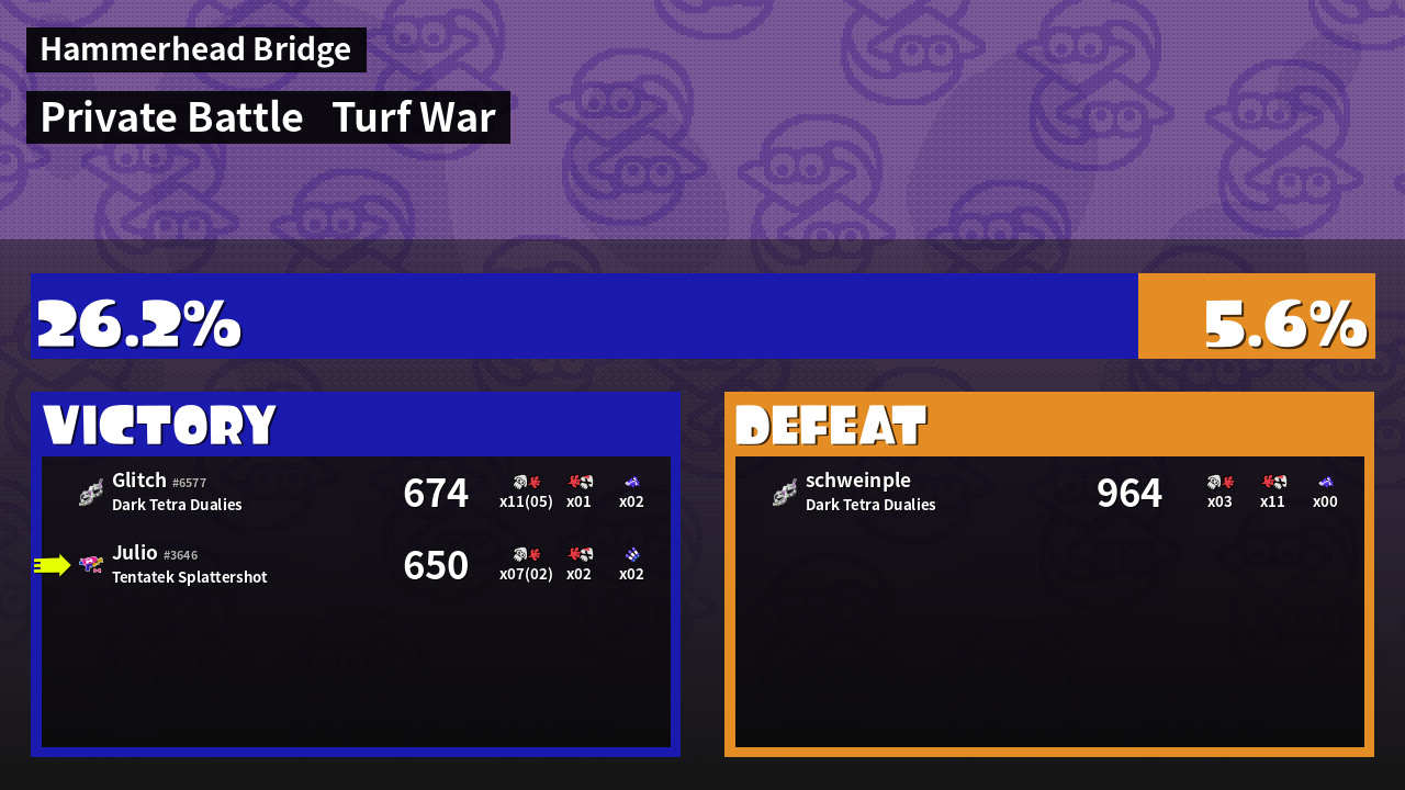 | Mode | Turf War - Private Battle | ||