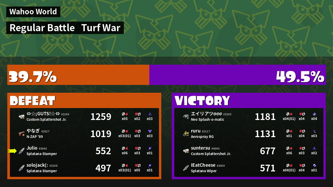 | Mode | Turf War - Regular Battle | ||||