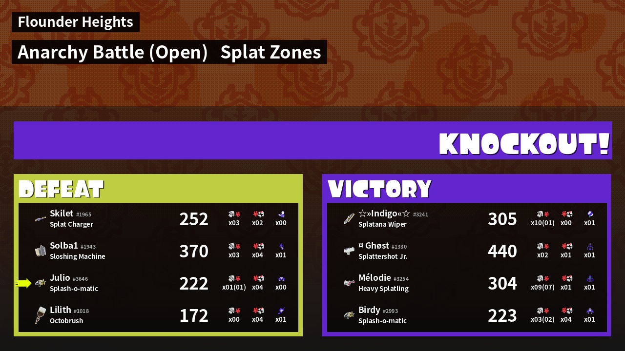 | Mode | Splat Zones - Anarchy Battle (Open) | ||
