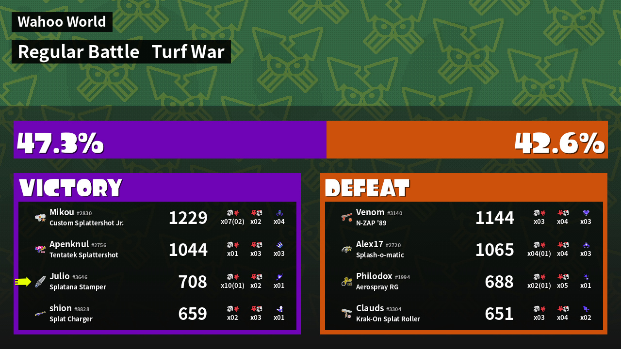 | Medals | #1 Overall Splatter #1 Popular Target #1 Enemy Splatter | ||||