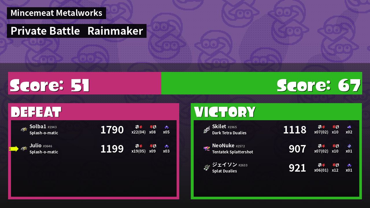 | Medals | #1 Splat Assister #1 Ground Traveler #1 Damage Taker | ||
