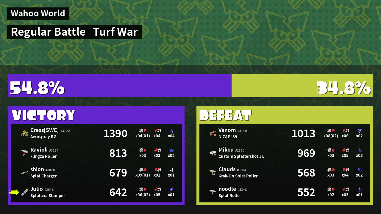 | Mode | Turf War - Regular Battle | ||||