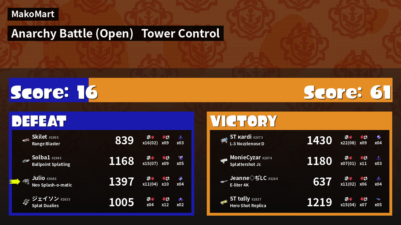 | Mode | Tower Control - Anarchy Battle (Open) | ||||