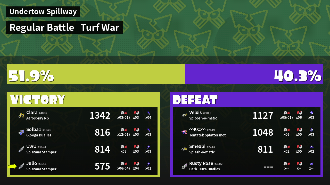 | Medals | #1 Splat Assister #1 Damage Taker #2 Overall Splatter | ||