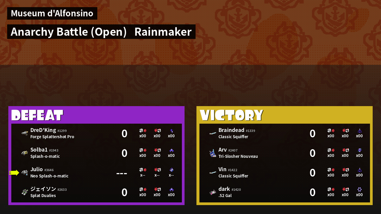 | Mode | Rainmaker - Anarchy Battle (Open) | ||||