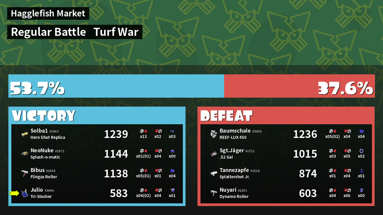 | Medals | #1 Super Jump Spot #1 Splat Assister #1 Damage Taker | ||