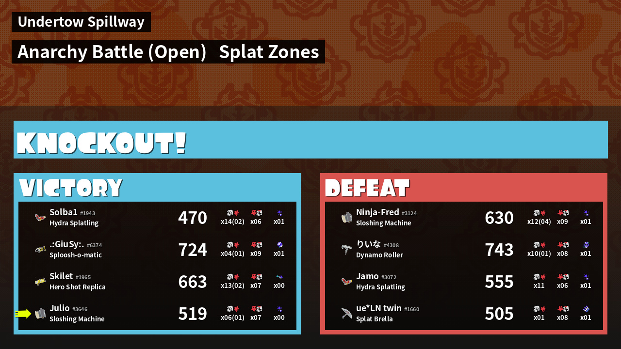 | Mode | Splat Zones - Anarchy Battle (Open) | ||
