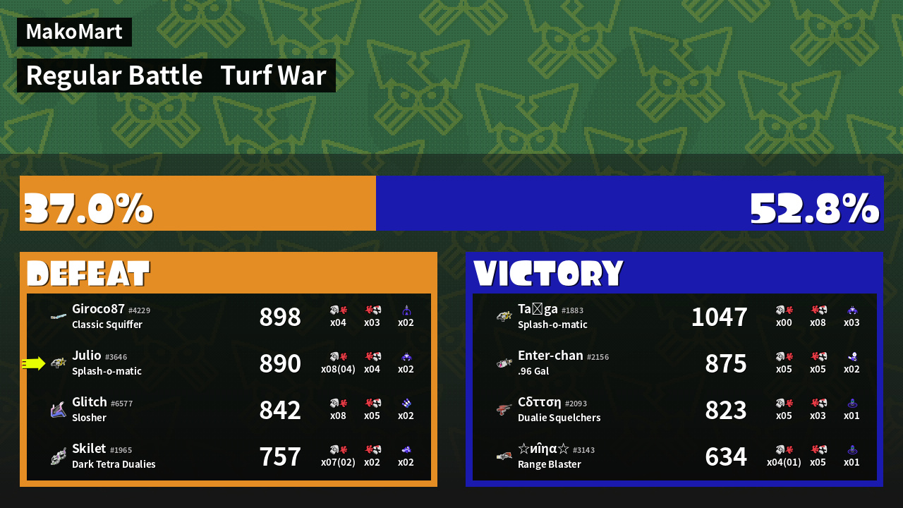 | Mode | Turf War - Regular Battle | ||