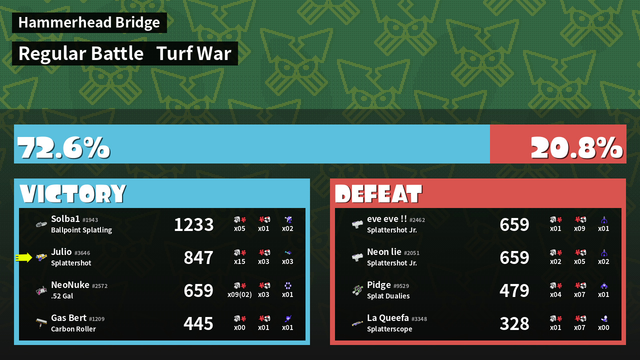 | Mode | Turf War - Regular Battle | ||