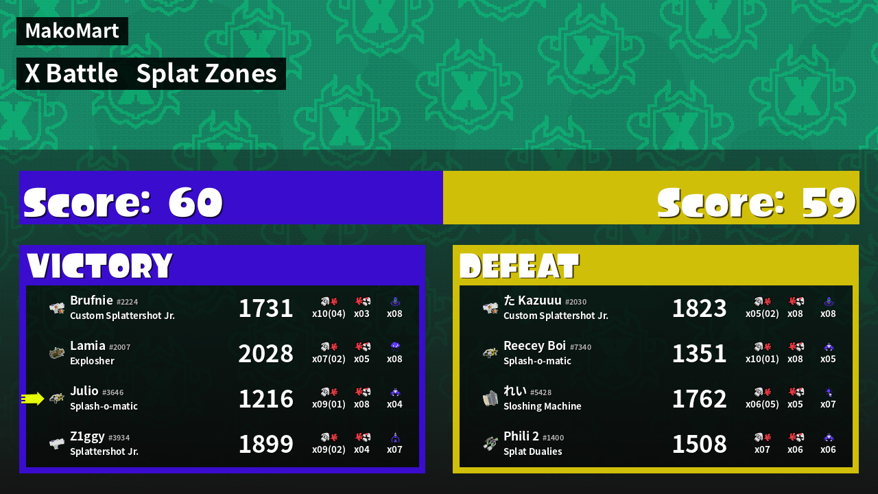| Medals | #1 Splat Zone Guard #1 Enemy Splatter First Splat! | ||