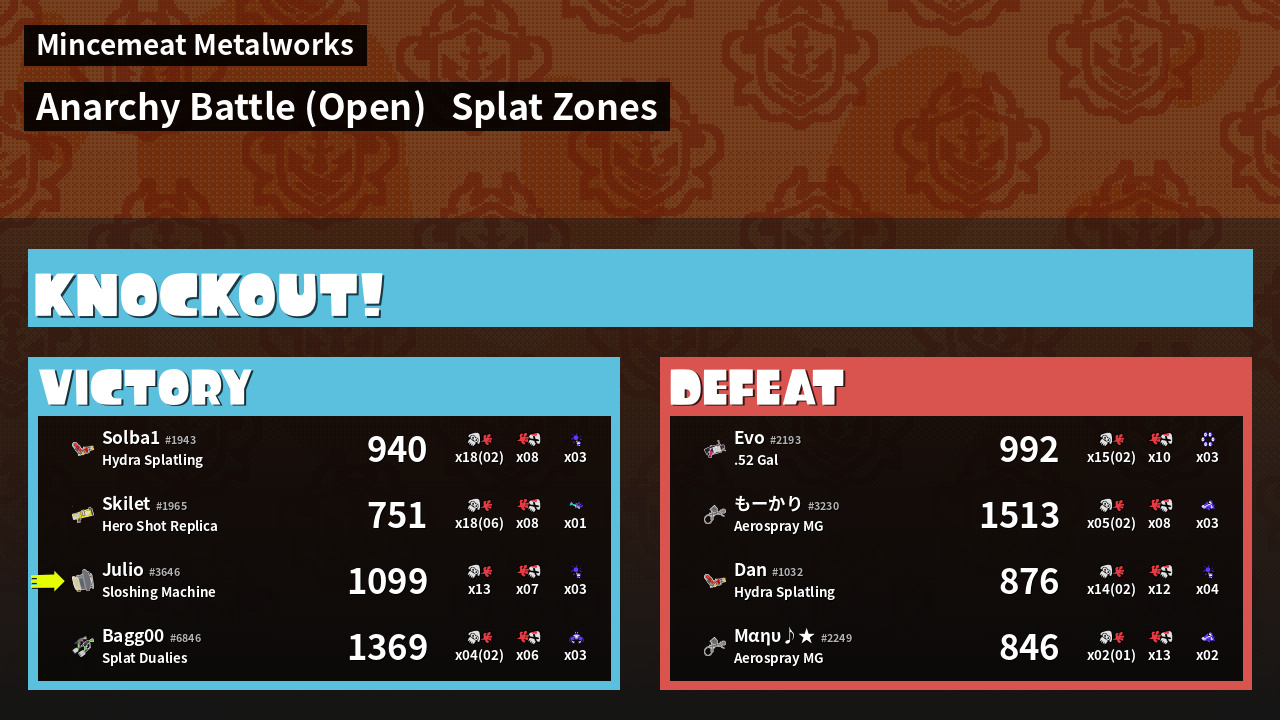 | Mode | Splat Zones - Anarchy Battle (Open) | ||