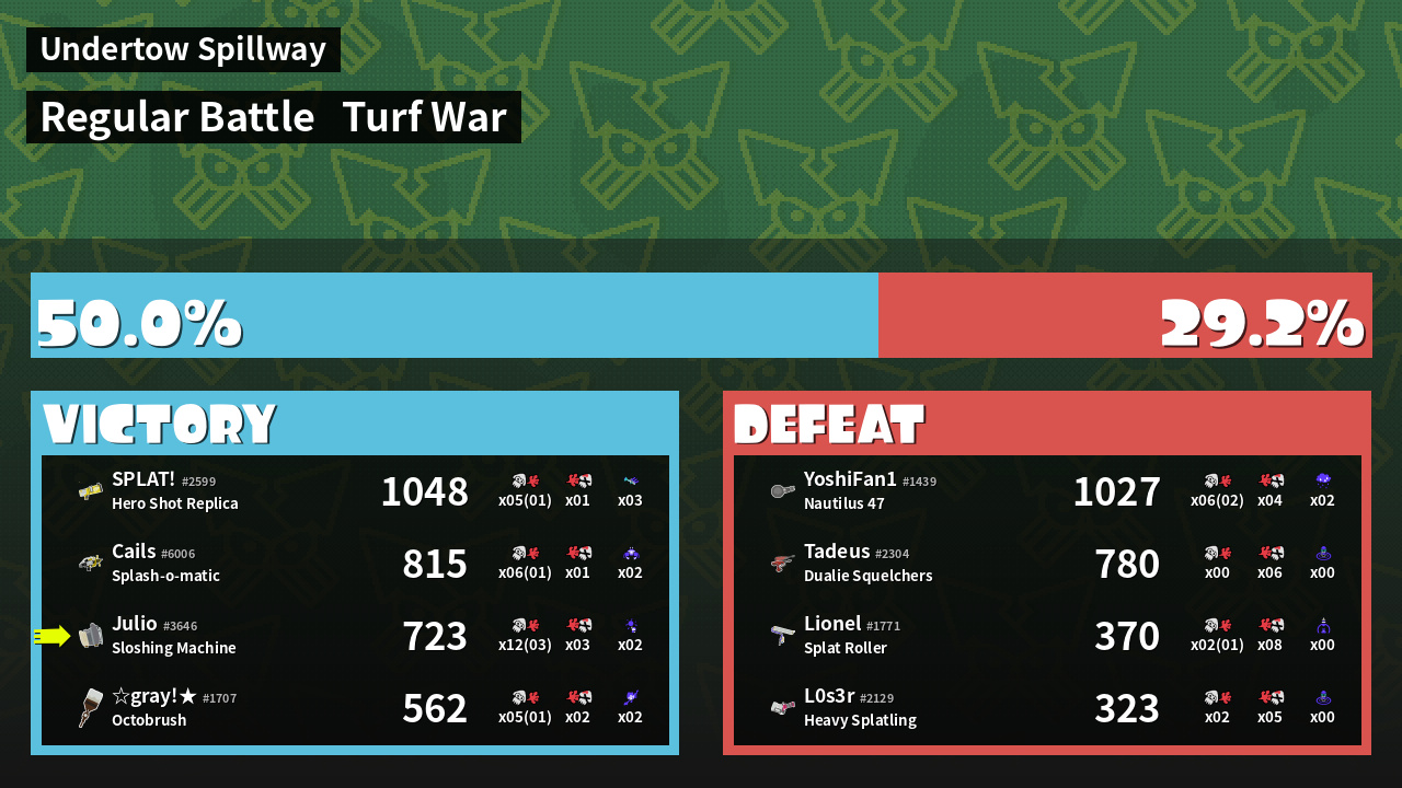 | Medals | #1 Overall Splatter #1 Popular Target #1 Enemy-Base Inker | ||