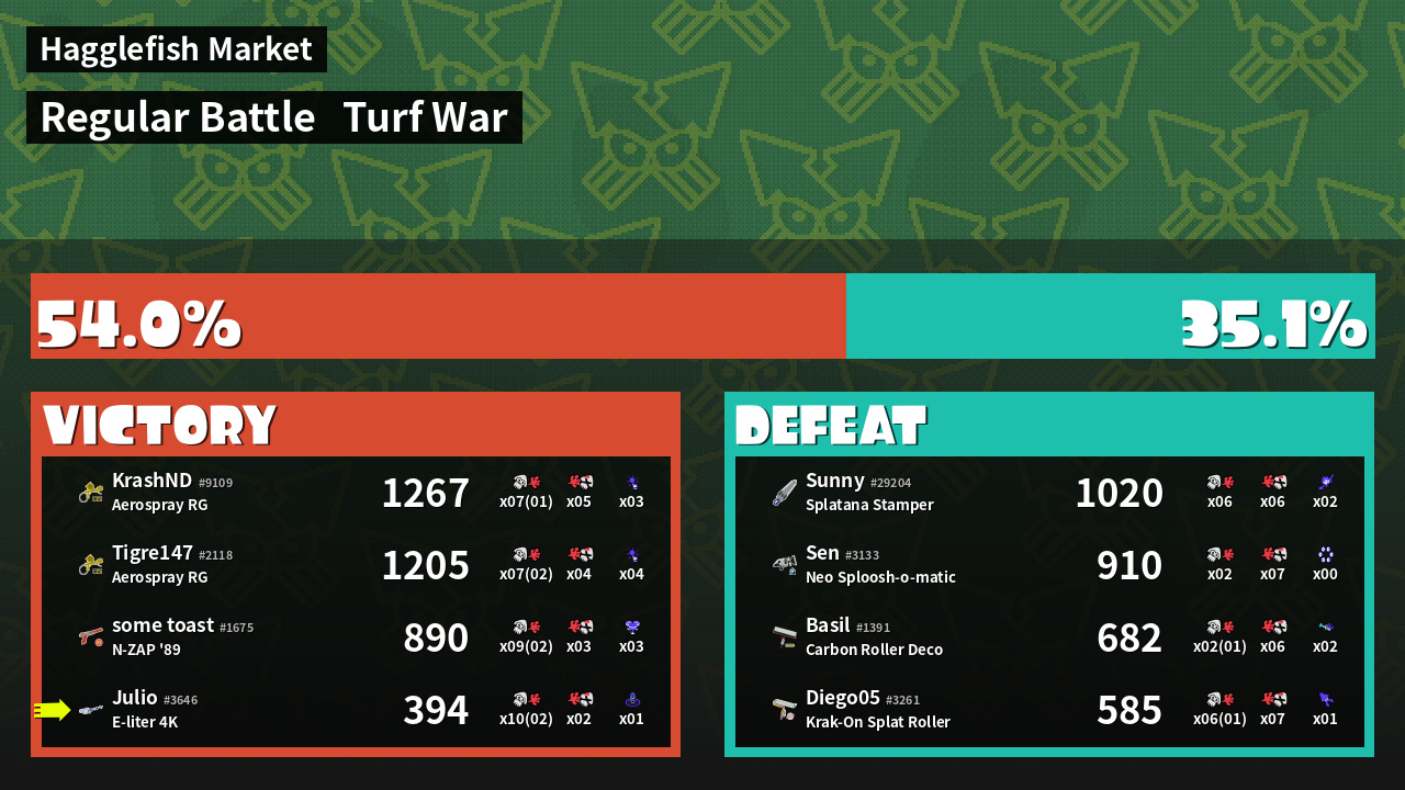 | Mode | Turf War - Regular Battle | ||
