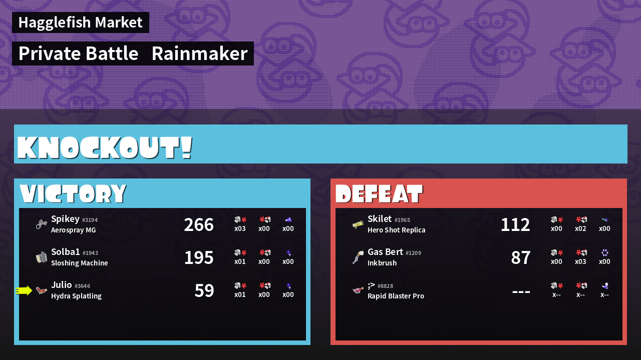 | Medals | #2 Overall Splatter #2 Enemy Splatter | ||