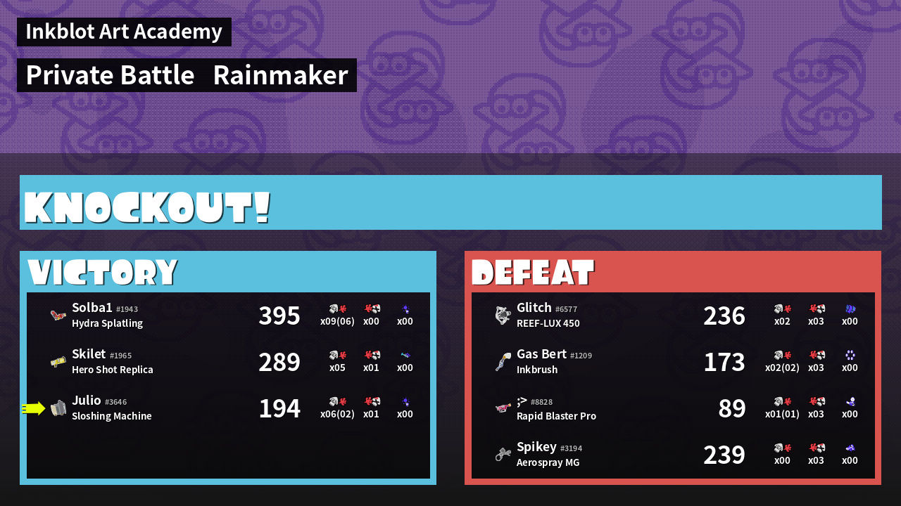 | Medals | #1 Ink Consumer #2 Overall Splatter #2 Popular Target | ||