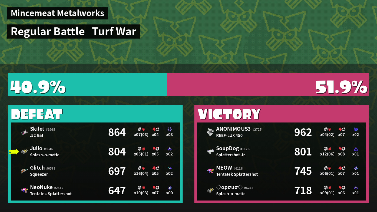 | Weapon | Splash-o-matic ( Burst Bomb / Crab Tank) | ||