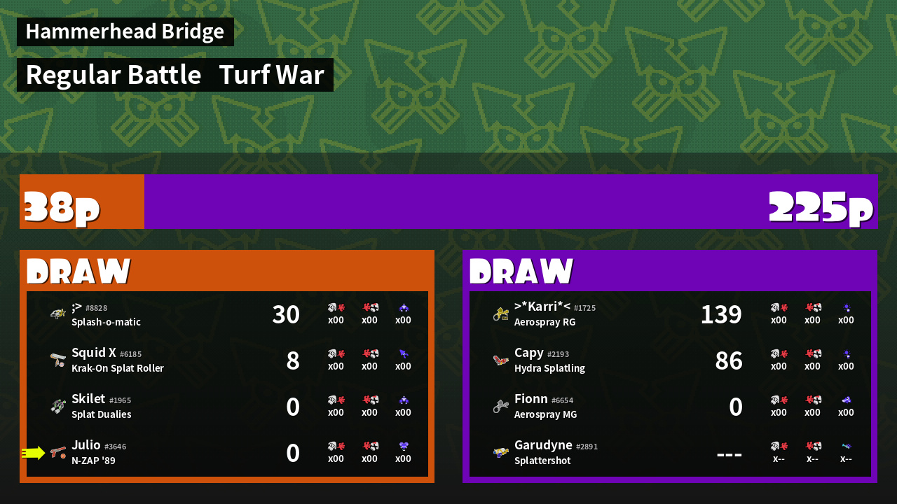 | Mode | Turf War - Regular Battle | ||