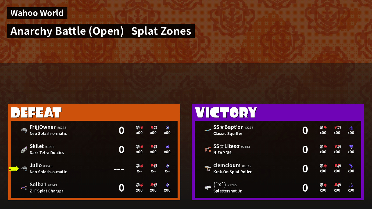 | Mode | Splat Zones - Anarchy Battle (Open) | ||