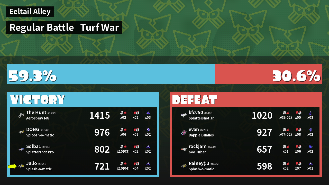 | Medals | #1 Enemy-Base Inker #1 Splat Assister #1 Damage Taker | ||