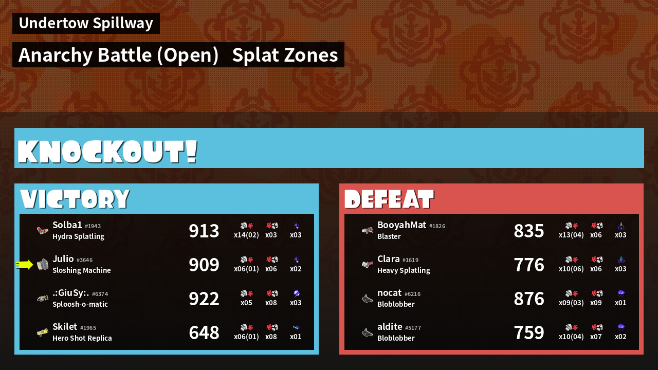 | Mode | Splat Zones - Anarchy Battle (Open) | ||