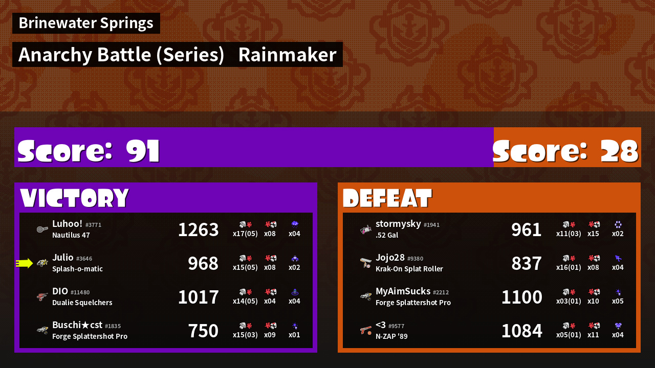 | Medals | #1 Popular Target #1 Splat Assister #1 Rainmaker Stopper | ||