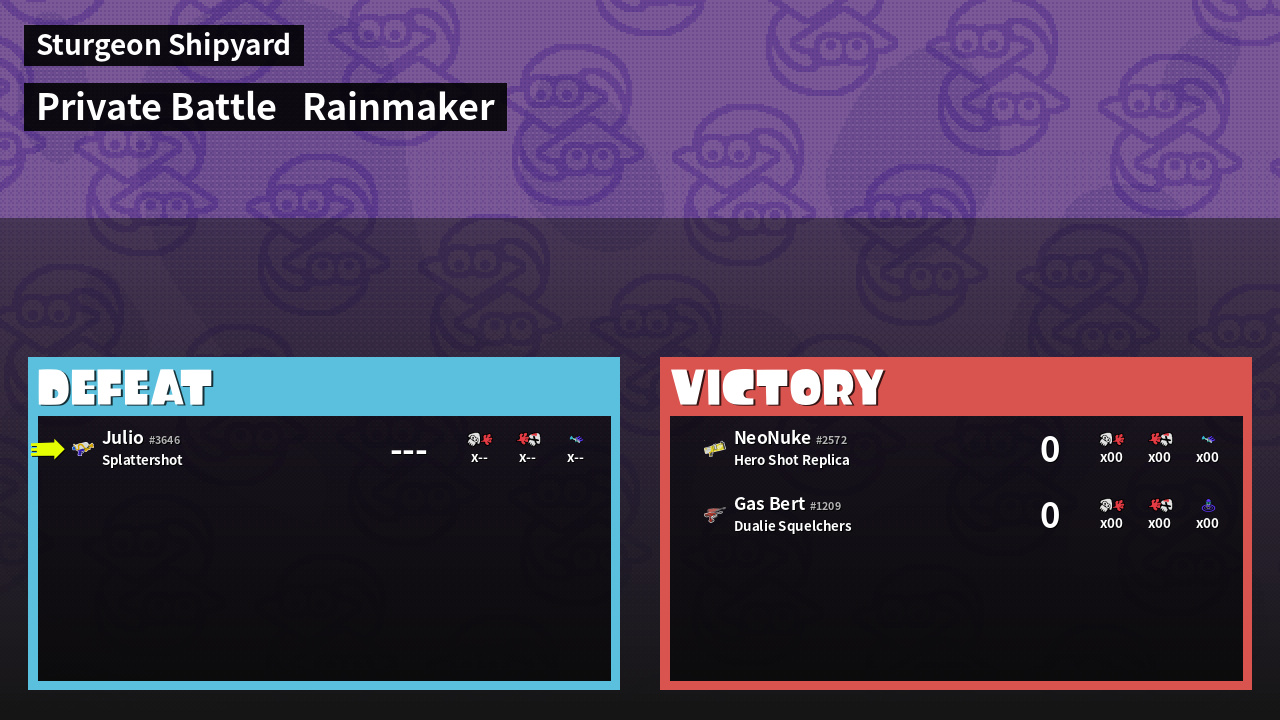 | Weapon | Splattershot ( Suction Bomb / Trizooka) | ||