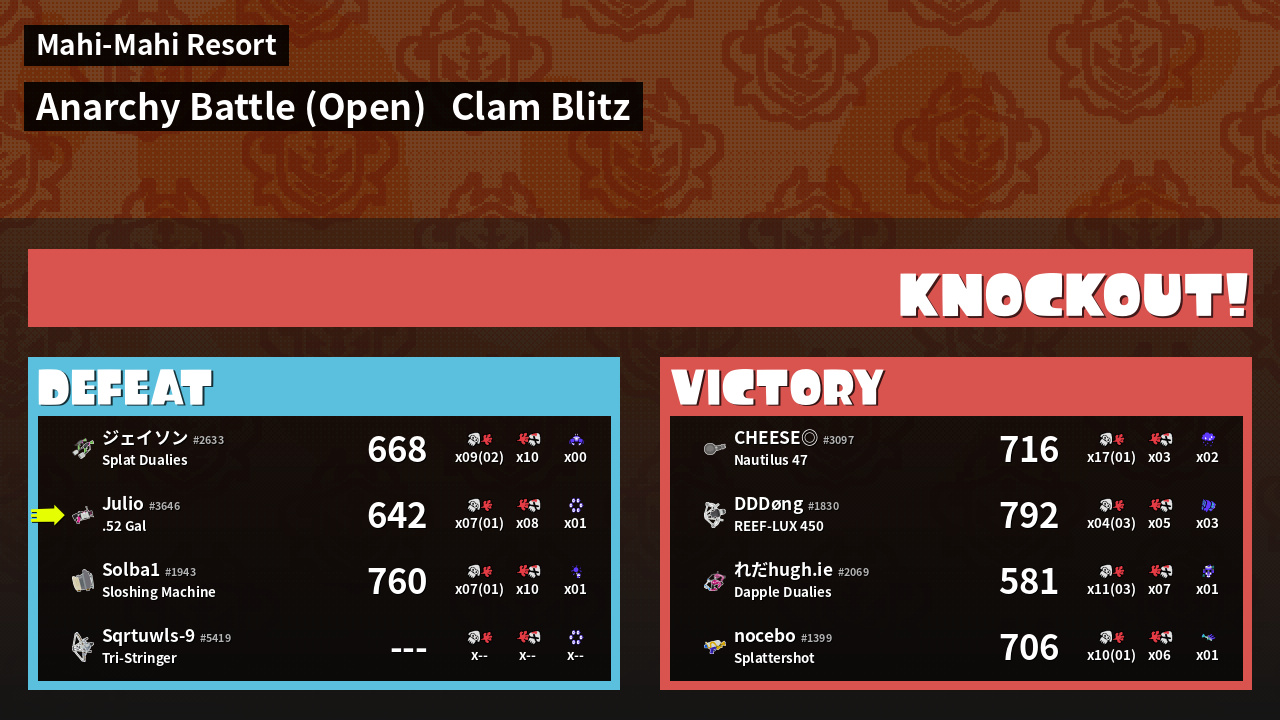 | Mode | Clam Blitz - Anarchy Battle (Open) | ||
