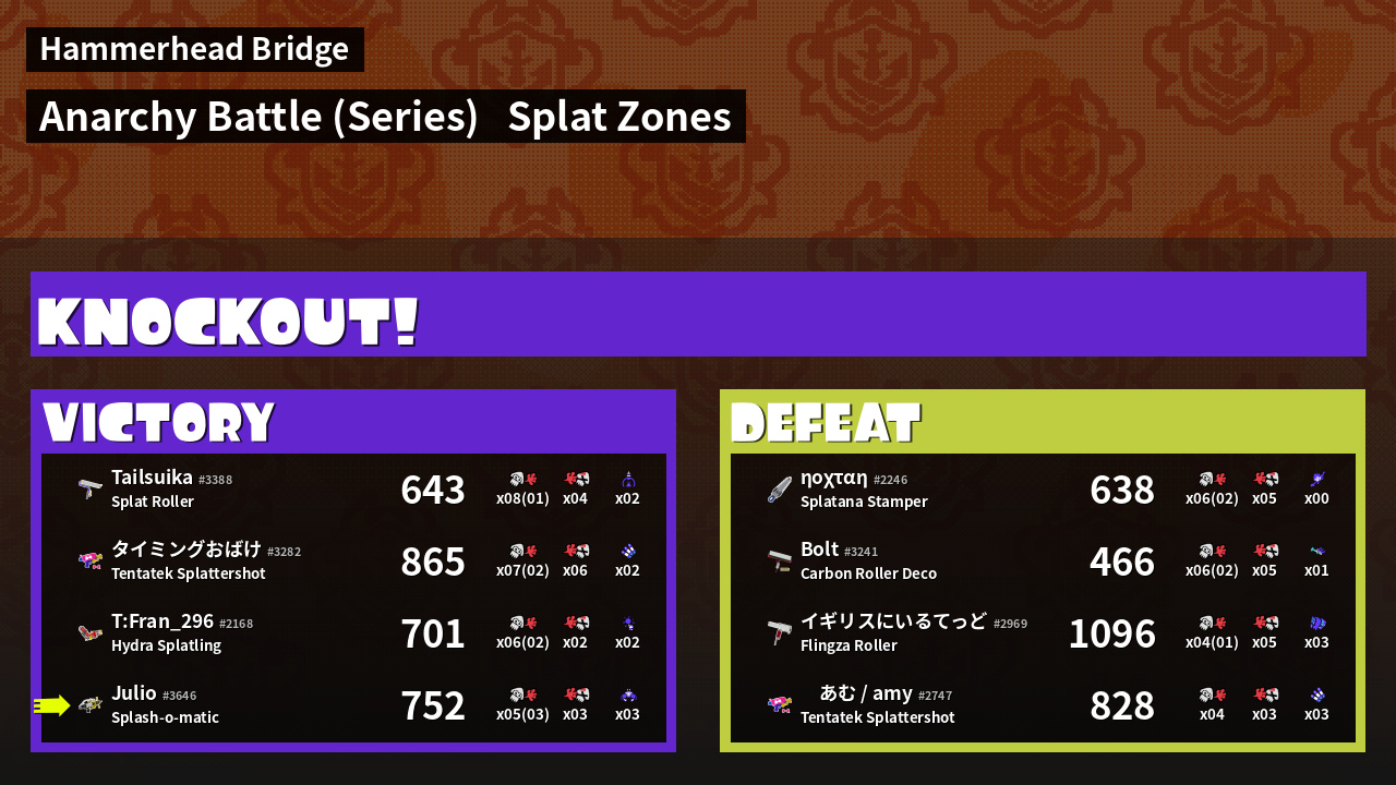 | Medals | #1 Splat Assister #1 Splat Zone Hero #1 Ground Traveler | ||