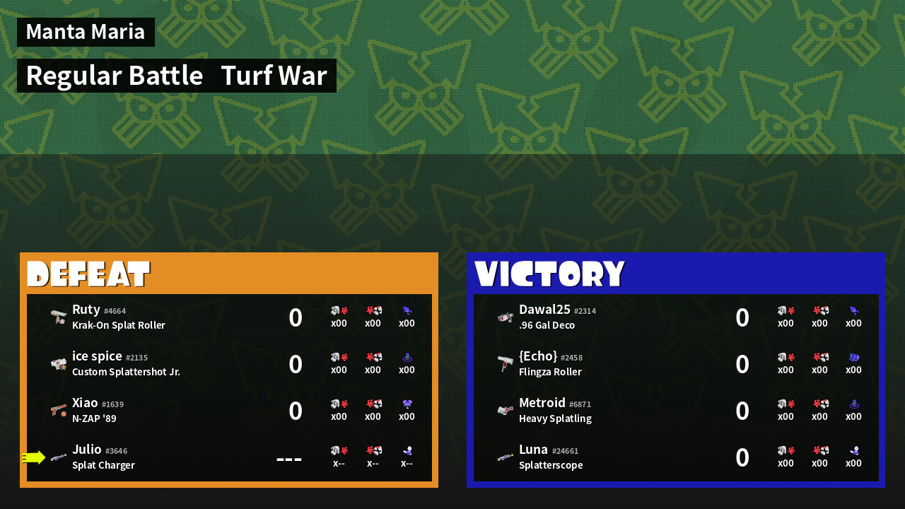 | Mode | Turf War - Regular Battle | ||