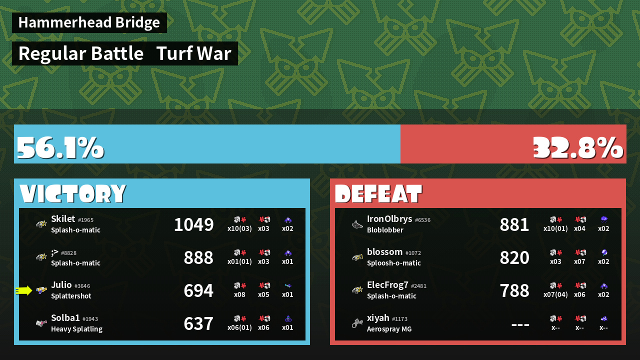 | Weapon | Splattershot ( Suction Bomb / Trizooka) | ||