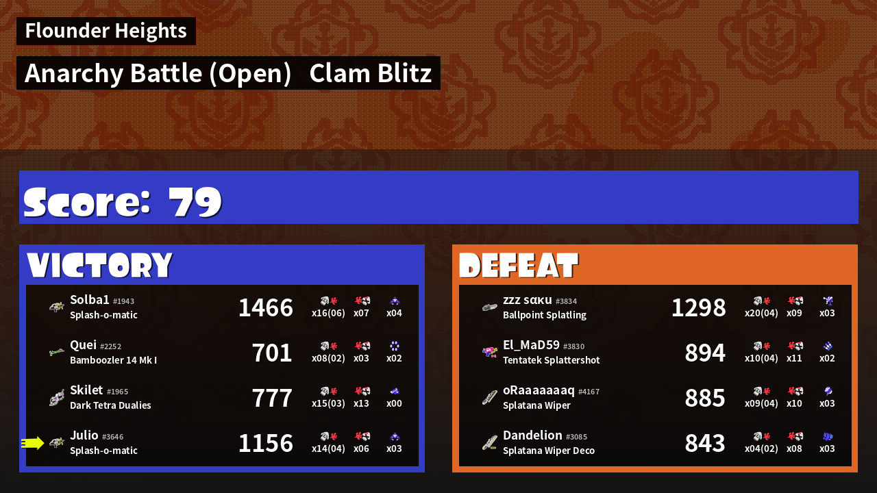 | Mode | Clam Blitz - Anarchy Battle (Open) | ||