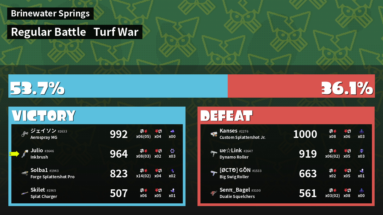 | Mode | Turf War - Regular Battle | ||