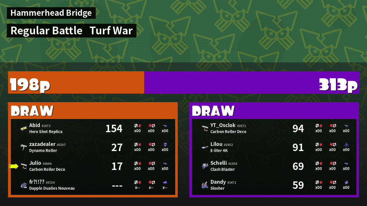 | Weapon | Carbon Roller Deco ( Burst Bomb / Trizooka) | ||