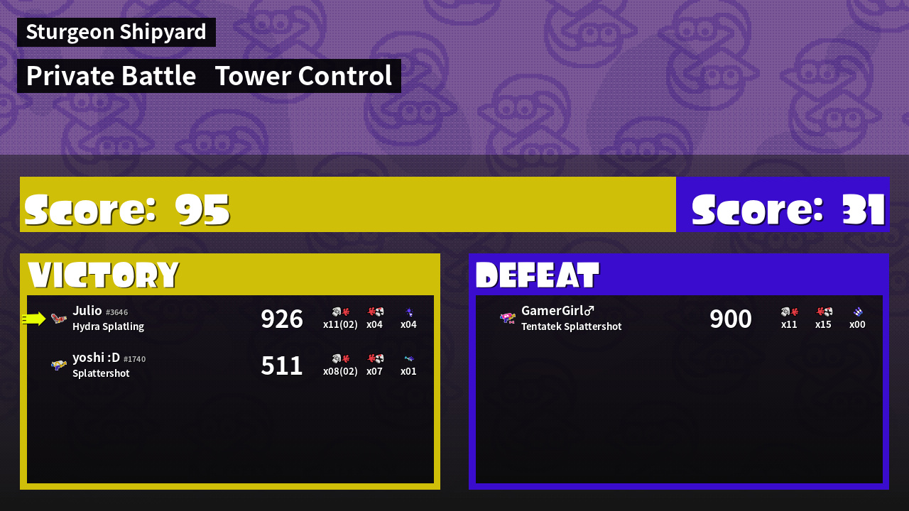 | Medals | #1 Overall Splatter #1 Turf Inker #1 Popular Target | ||