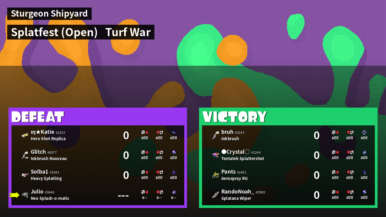 | Mode | Turf War - Splatfest (Open) | ||||