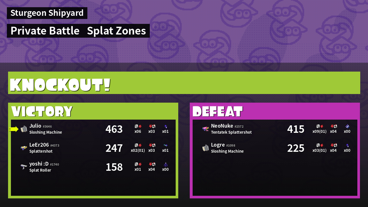 | Medals | #1 Overall Splatter #1 Splat Zone Inker #1 Splat Zone Guard | ||