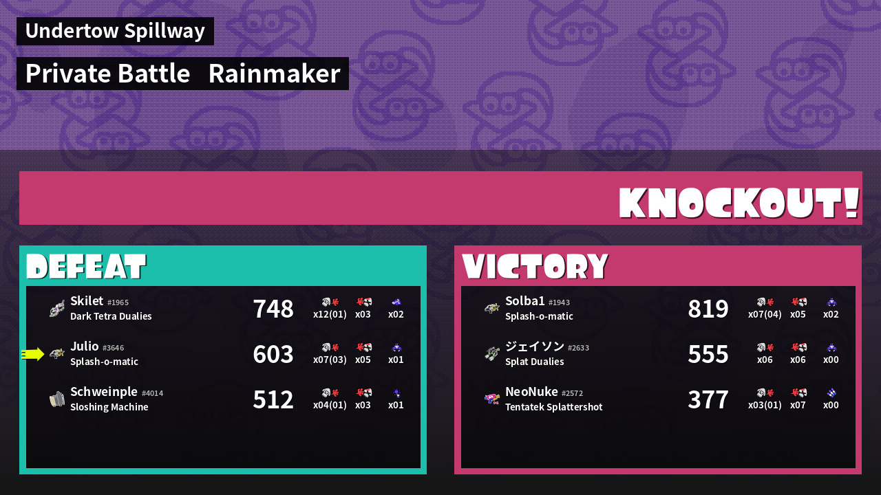 | Medals | #1 Score Booster #1 Splat Assister #1 Rainmaker Carrier | ||