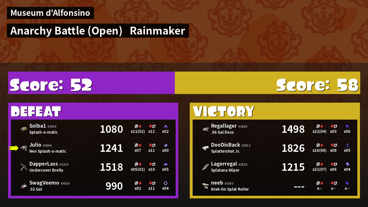 | Mode | Rainmaker - Anarchy Battle (Open) | ||||