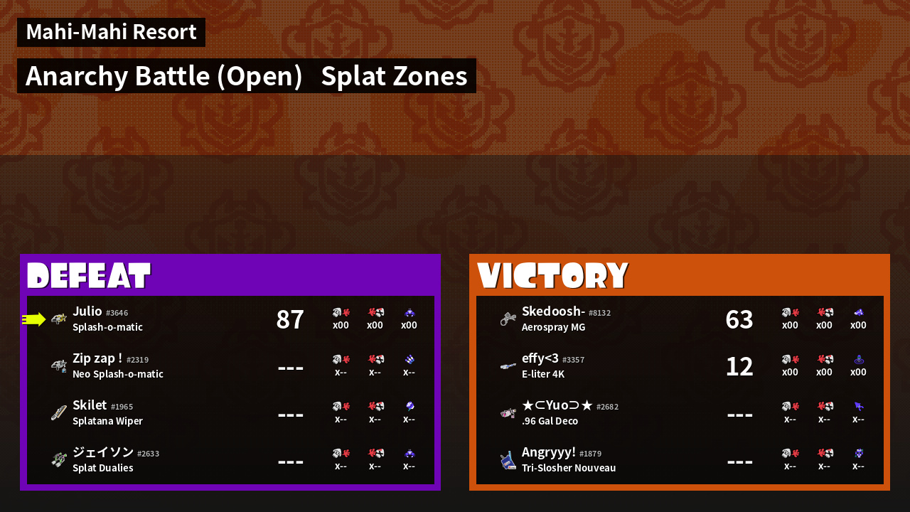 | Mode | Splat Zones - Anarchy Battle (Open) | ||